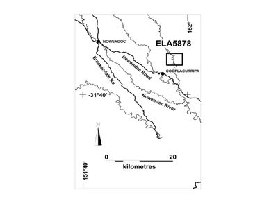 The map shows the exploration area which is located 32 kilometres to the east of Nowendoc.